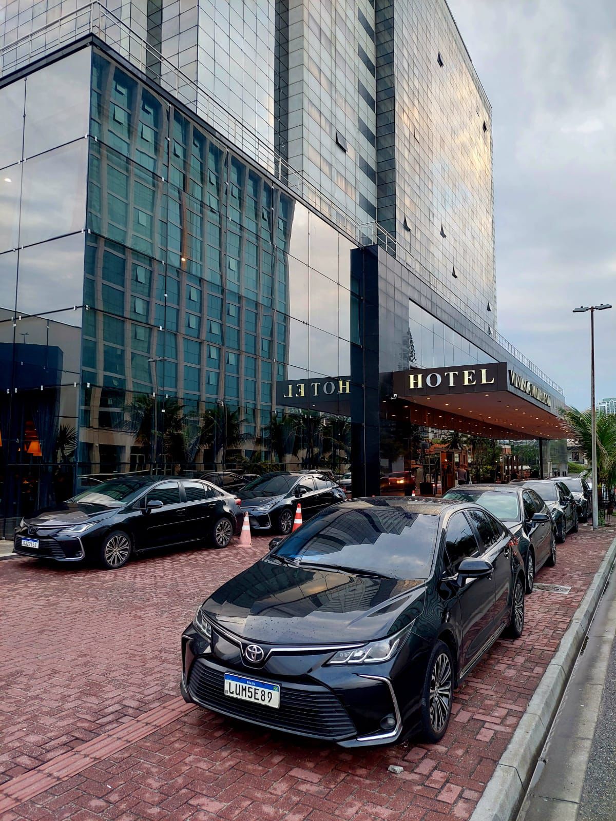 motorista em carro executivo (sedan ou SUV) com horário marcado para transfer in/out para aeroporto.